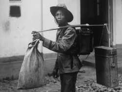 Communication from all over the world: Postwoman outside the post office in Pemalang on Java, Indo-nesia. Photo: Tropenmuseum, the Netherlands.