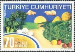 Turkish European thematic stamp from 2005. The European thematic stamps feature different motifs from country to country, but they all share a common theme. In 2005 the theme was Gastronomy.
