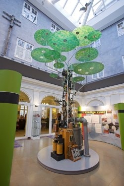 A closer inspections shows that the tree contains things like old telephones, arc transmitters, mobile phones, computers and printed circuit boards. The only thing which is actually made of wood is what is contained in the different components the tree is built of. For this is a tele tree; built of scrap which might otherwise have ended up in a random rubbish bin. The tele tree forms part of the museum's new exhibition How many cows does an e-mail pollute, mum? which can be seen in the foyer and on the balcony until 3rd January 2010.