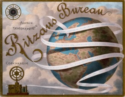 Ritzau's invitation on the occasion of the 25 year jubilee of the news agency illustrates so as to admit of no doubt how they could be first with the latest news from the entire globe by means of the telegraph. Photo: Ritzaus, Danmark.