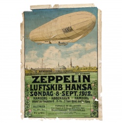 Poster for the airship Hansa's visit to Copenhagen in 1912. Property of Uffe Mortensen. Photo: Jan Friis.