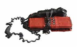 The museum's decorative telephone was dressed in brocade and ribbon by a dexterous woman from Vendsyssel in the late 1960's.