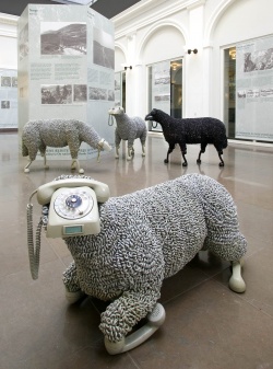 Behind the sheep is the French artist Luc Cornec. Having finished his studies at Ecole des Beaux-Arts in Nantes he went to Germany where he has been living and working in Frankfurt am Main ever since. In his work he puts different elements into new contexts and creates new meanings. Communication and understandig are, consequently, important themes to the French artist, who has an eye for the many things that are left over when we find something new - in this case things we are scrapping concurrently with the speedy development of new communication tools. Cornec picks up, dusts, and blows new life into forgotten things and Post & Tele Museum proudly welcomes him and his motly flock of sheeps. The artist has agreed to "install" the flock so that it is ready for presentation on the Culture Night, Friday the 8th of October 2004.
