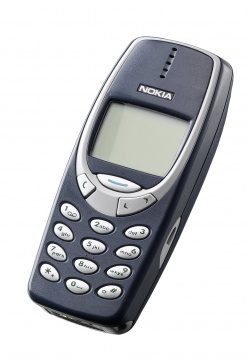 One of the so far most popular mobile telephones, Nokia 3310, which was launched in Denmark in 2000.