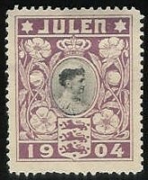 Danmarks første julemærke fra 1904 med portræt af Dronning Louise
